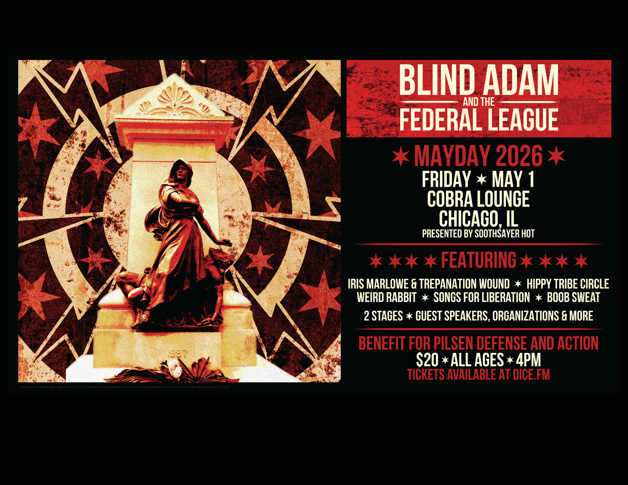 Mayday in Chicago is always a big deal, last year there were over 35,000 people in the streets, thousands visited the Forest Home Cemetery in Forest Park, where the Haymarket Memorial is located as well as hundreds of revolutionary comrades from the last 150 years or so. Defend Dissent at Broadview will be tabling!